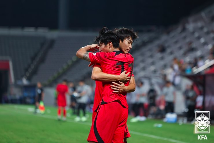 0-0의 흐름에서 점유율을 내주던 한국 대표팀이 정상빈 선수의 강력한 프리킥 골로 경기의 주도권을 가져올 수 있습니다.