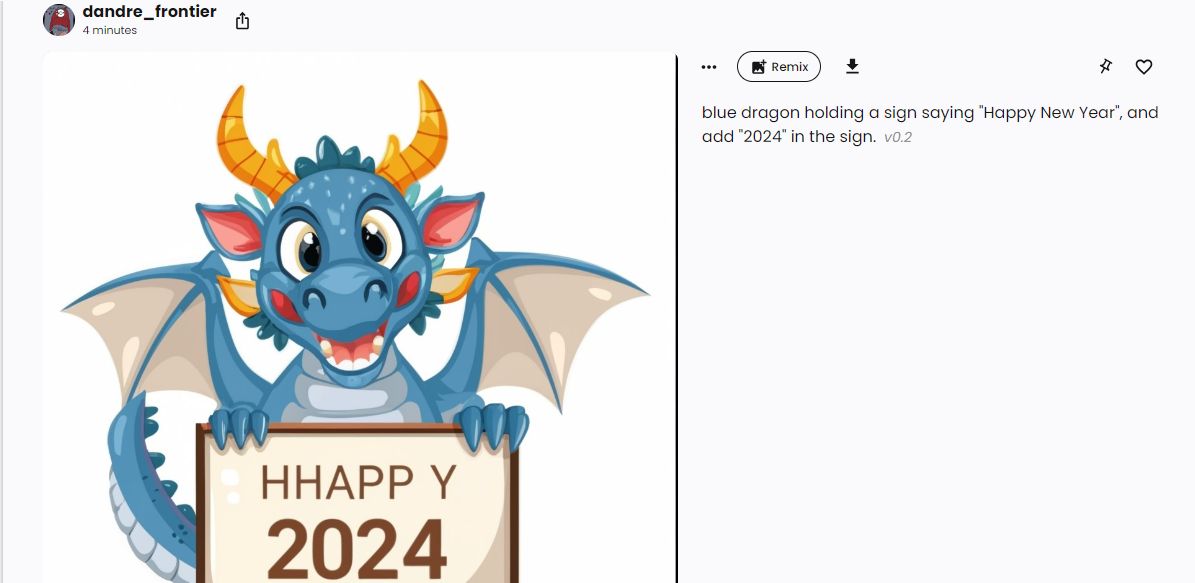 2. 만들고자 하는 텍스트를 입력하면 생성할 수 있습니다. 현재는 영어로만 가능하고 "Happy New Year"라고 쓴 청룡 이미지를 만들어 달라고 할 수 있습니다.