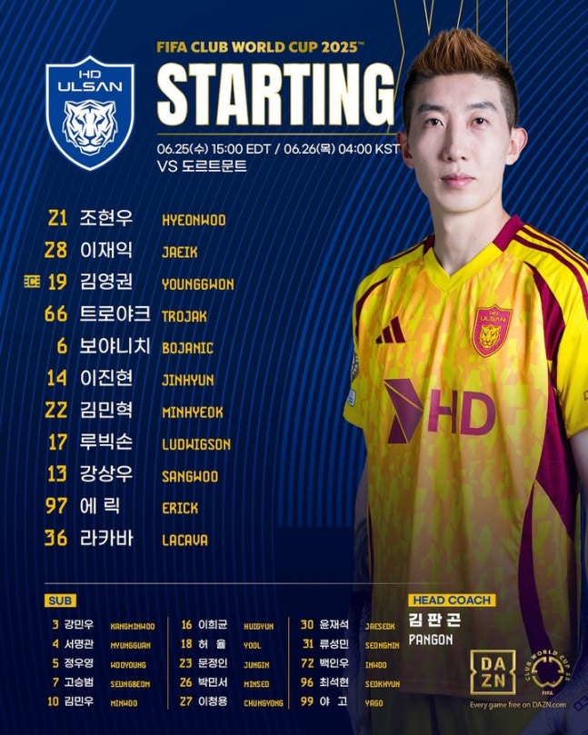 김판곤 감독은 후반 초반 교체를 통해 흐름을 바꾸려 했지만, 보다 빠른 시점에서의 용병술이 필요했습니다. 특히 체력이 떨어지기 시작한 도르트문트를 상대로 한 발 빠른 교체와 전술 변화는 승패를 가를 수 있었던 요소였습니다. 교체 투입된 이청용과 박민서는 분명 활기를 불어넣었지만, 시간이 부족했습니다.