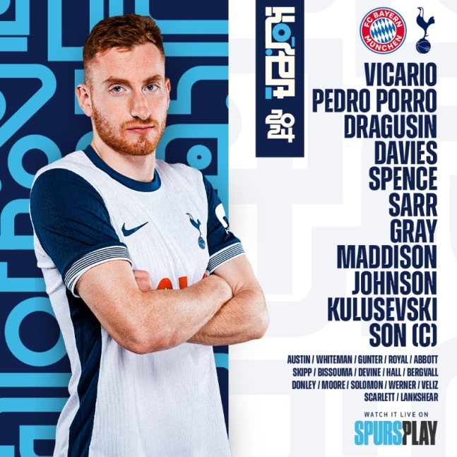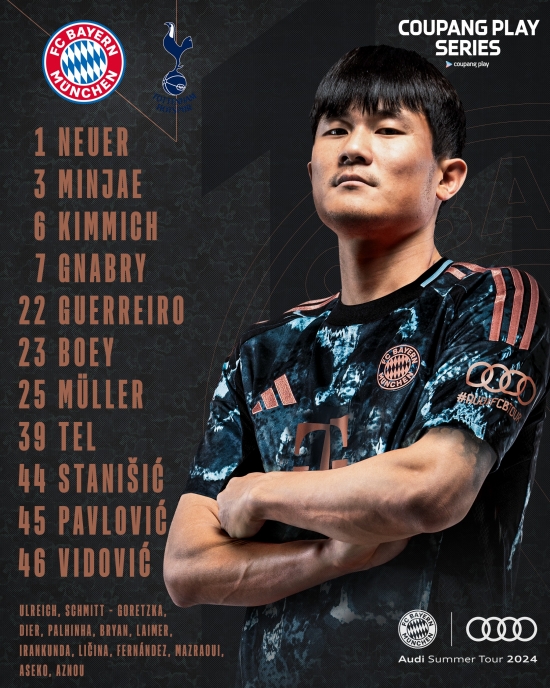 다가오는 8월 3일 오후 8시 서울월드컵경기장에서 열리는 뮌헨과 토트넘과의 '쿠팡플레이 시리즈' 2경기를 앞두고 선발 명단이 공개되었습니다.