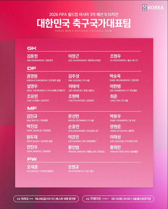 하나되어 빛나는 태극전사들의 도전, 2026 월드컵 아시아 3차 예선 이라크·쿠웨이트전 완벽 정리!