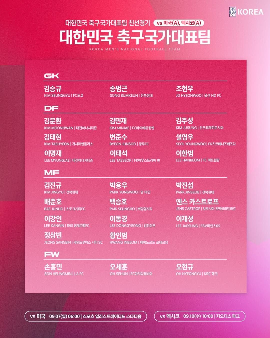 동아시안컵을 통해 A매치 데뷔를 한 김태현(가시마)과 변준수(광주FC)는 이번 명단에서도 생존했습니다. 이는 홍명보 감독이 국내 리그와 국제무대 경험을 균형 있게 고려하고 있음을 보여주는 예시로, 로테이션 전략과 젊은 피 수혈의 시작점이라 볼 수 있습니다.