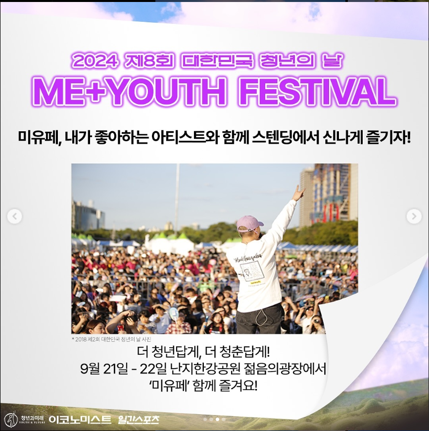 | <2024 제8회 대한민국 청년의 날> D-18 카드뉴스 소식 (1) | 2024.09.04 |
