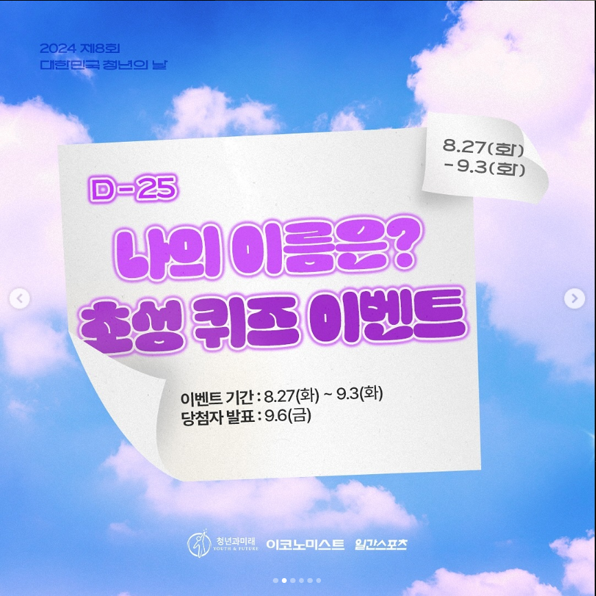 | 2024년 제8회 대한민국 청년의 날 D-24 카드 뉴스 소식 (0) | 2024.08.31 |
