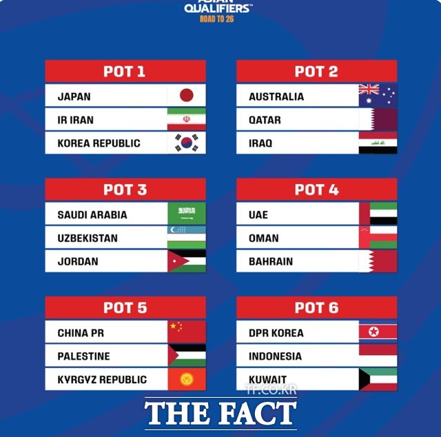 2026 북중미 월드컵 아시안 3차 예선 포트별 국가 /w. FIFA 랭킹