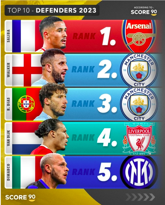 김민재 선수가 전 세계 최고 수비수 TOP10에 이름을 올려 6위에 배치 되었습니다. 'SCORE90' 매체의 공식 채널을 통해 2023년 수비수 TOP10을 선정하여 공개 되었습니다. 1위부터 윌리엄 살리바(아스널), 카일 워커(맨체스터 시티), 후벵 디아스(맨체스터 시티), 버질 반다이크(리버풀), 페데르코 디마르코(인터밀란)가 TOP5을 구축했습니다.